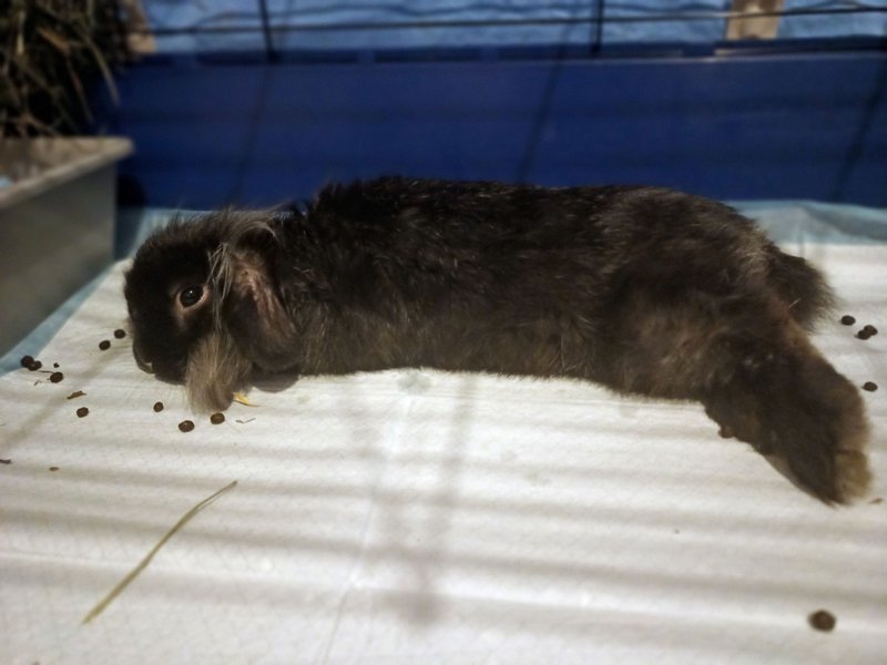 Stabo został oddany przez poprzednich właściceli z powodu braku czasu na zajmowanie się królikiem. Ma 3-4 lata i jest bardzo odważny i przyjacielski. To typowy miziak, który lgnie do człowieka. Nie jest jeszcze wykastrowany, przez co zdarza mu się znaczyć teren (choć poczynił w tym temacie już ogromne postępy odkąd do nas trafił!), ale poza tym świetnie korzysta z kuwety. Przebywa w domu tymczasowym, aktualnie przechodzi leczenie płuc. Wyglądają już one coraz lepiej, Stabo kończy leczenie, a 6 stycznia czeka go wizyta kontrolna.